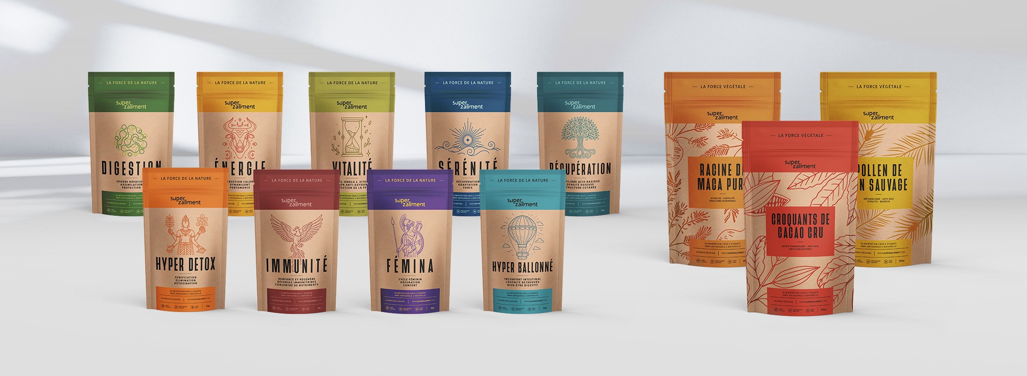 Les sachets de Superzaliment sont conçus pour refléter l'authenticité et la simplicité.